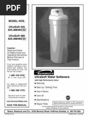 Watersoftner Ultrasoft 425 480 Manual Pdf Pdf Sodium Chloride Sears